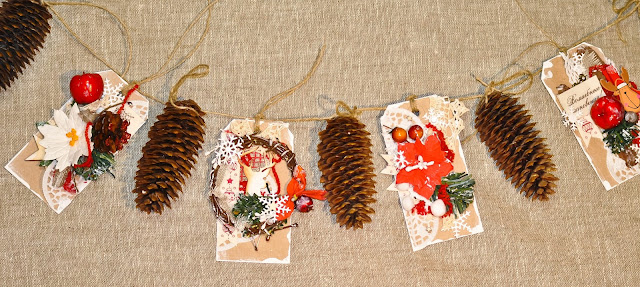 По этому этапу я сделала гирлянду с еловыми шишками.